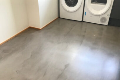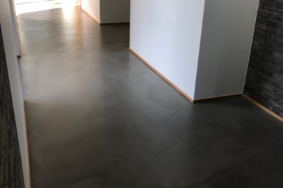 I Hadsten har er der udført 280 m2 designgulv med VELOSIT SL502 Design Grå. Efter udlægning er der gået utallige timer med slibning, polering og finesse, for netop at ramme det rigtige spil, dybde og struktur.